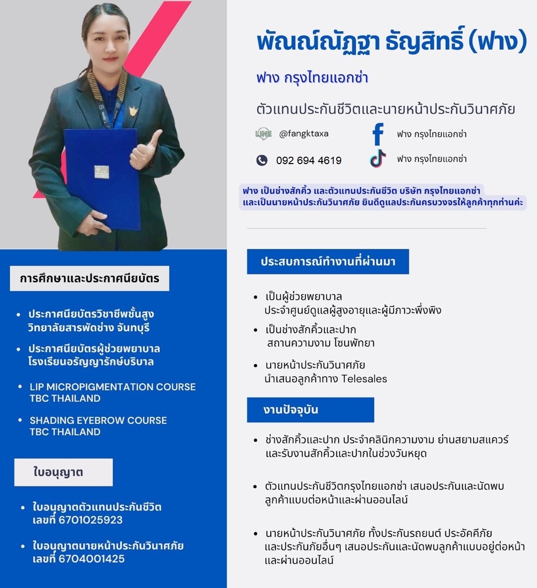 รายละเอียดติดต่อ พัณณ์ณัฏฐา ธัญสิทธิ์ (ฟาง)
